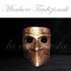 BAUTA CON CAPELLO GIALLO MARRONE Maschera in cartapesta raffigurante la bauta con l'aggiunta del tricorno classico capello dell'epoca,colorazione marrone e giallo con decorazioni in foglia oro